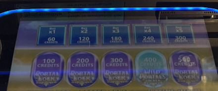 It may be a little hard to read, but the bets on the bottom row — $1, $2, $3, $4, $5 — have the words “portal lock” underneath them. The bets on the top row — $0.60, $1.20, $1.80, $2.40, $3.00 — don’t. Why does that matter? Well, those circular portals don’t stick around from spin to spin if you’re making bets on the top row, so there can never be an advantage for the player.