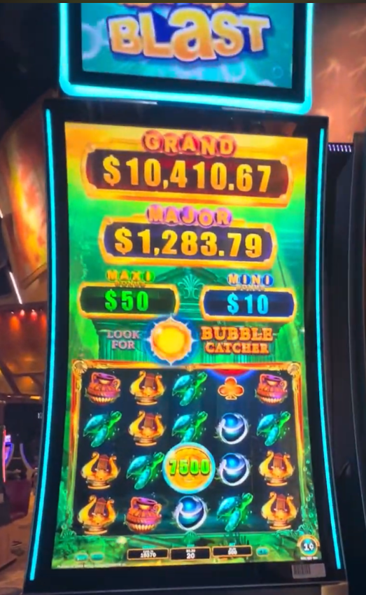 Above is a $5 bet with a $75 bubble for two spins (15x the bet). The goal is to get the bubble to land on a yellow symbol, which will award you whatever the amount is. That will look like this: