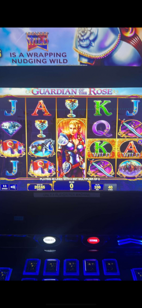 My buddy snapped a photo of another version of this game that looks like a clone, Guardian of the Rose. With this one, the wilds are orange instead of green, and we get more of a regal feel than whatever Hao Yun Fa is. Even though I didn’t play this one, I’d bet my bottom dollar it’s the same game: