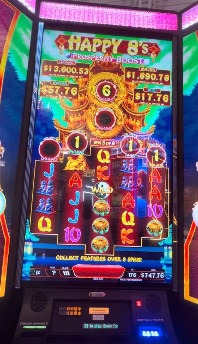 Below you’ll see we are on spin five of eight and have collected six wilds, two bonus symbols, two minis, and one major: