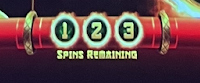 Also notice the small green circles above the words “spins remaining,” where it has 1, 2, 3. With all three present, we have at least three spins to hopefully add more fire circles and land some coins in those circles.