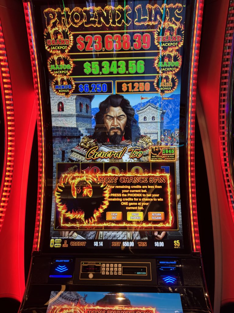 You’re hoping to hit some of these random bonuses before you trigger the must-hit bonus, which can happen at any point on the way to 1,888. If you play Phoenix Link, bring your wallet and hope for the best. Losing 250 or so bets is possible, even on 1,550-type numbers. I’ve done that plenty.