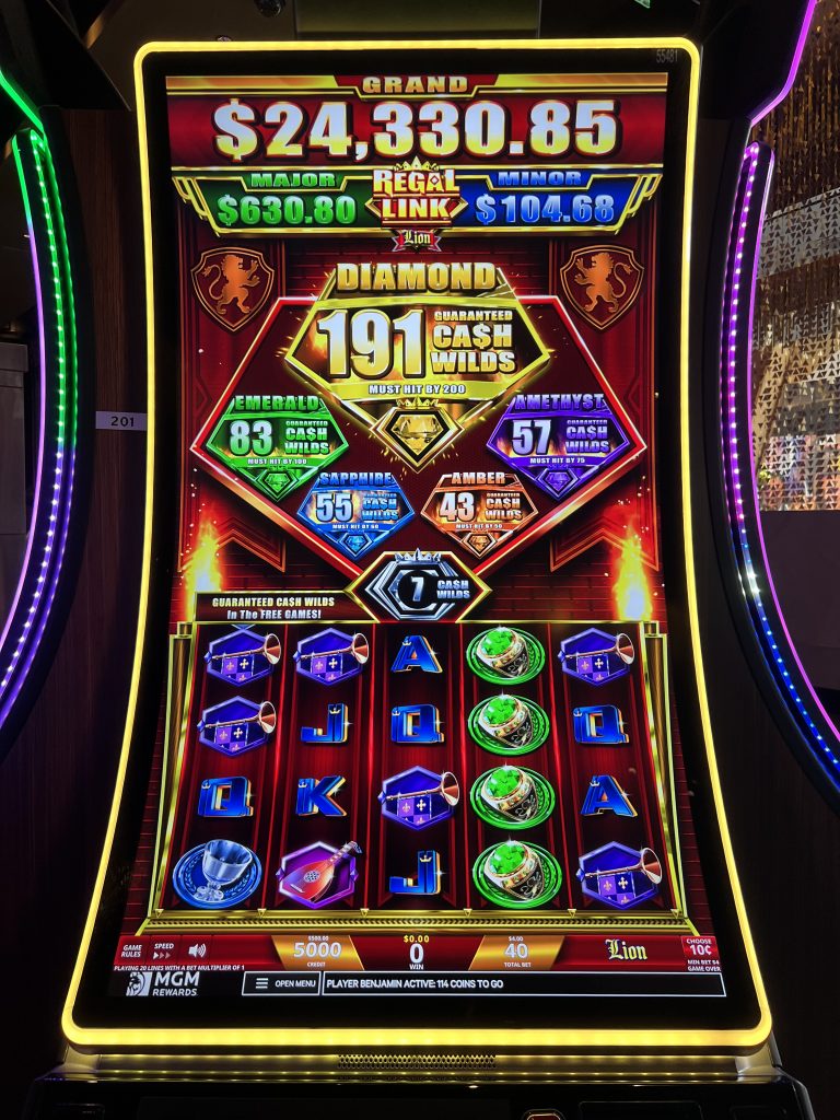 Unlike Regal and Prosperity, the wilds sometimes have a random amount of money imprinted on them or come with a small gem attached. Within those 10 games, gathering five grand gems gives you the grand (good luck!), four majors give you the major, and you guessed it, three minors give you the minor.